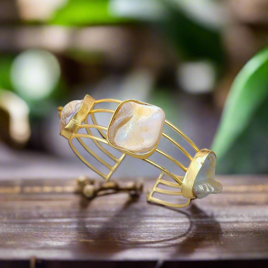 Brass Golden Premium Kashmiri Earrings #GE043 - Peach Monalisa Stone