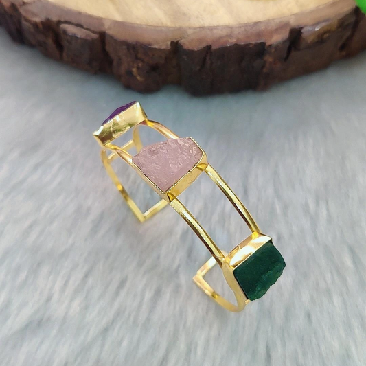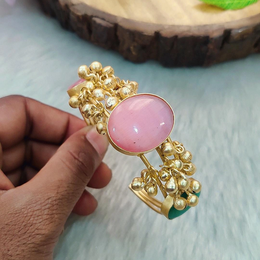 Brass Golden Premium Kashmiri Earrings #GE042 - Pink Monalisa Stone