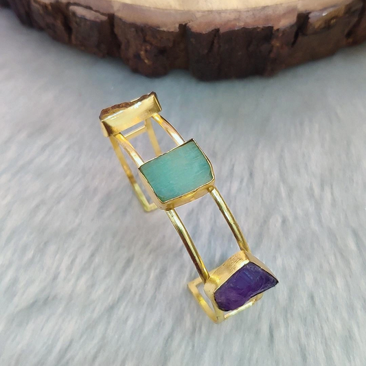 Brass Golden Premium Kashmiri Earrings #GE043 - Sea-Green Monalisa Stone