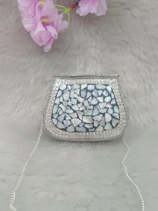 Silver Mini Metal Clutch / Sling Bag / Handbag #C010 - Decorated with Shell