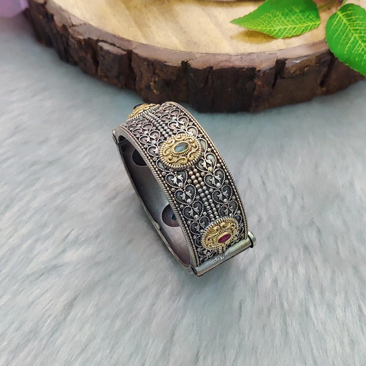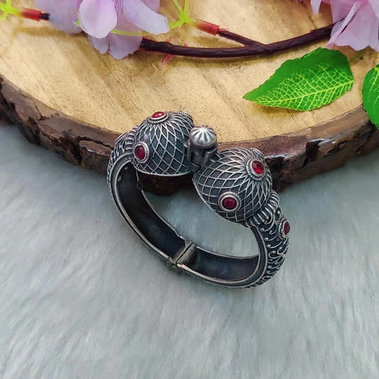 German Silver Kada #B24 (Green-Red)