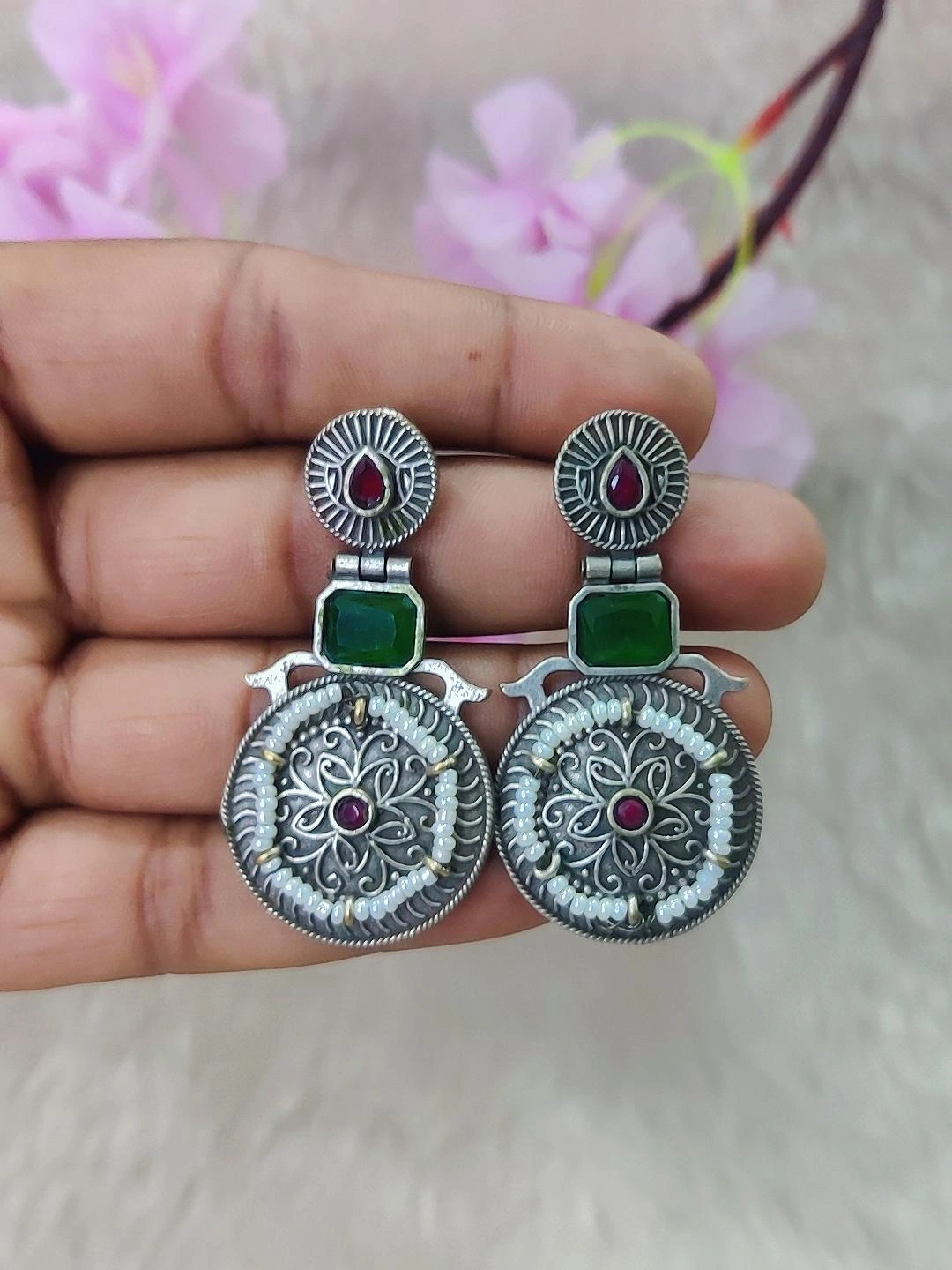 German Silver Earrings #GE104 - Multi (Ranipink-Green)