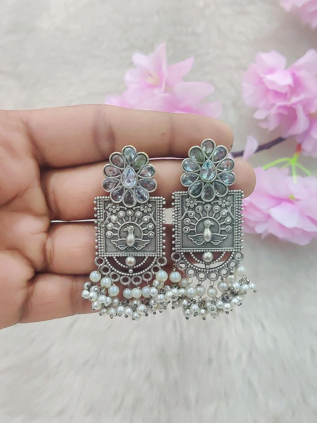 German Silver Flora Earrings #GE027 (White Monalisa Stone)
