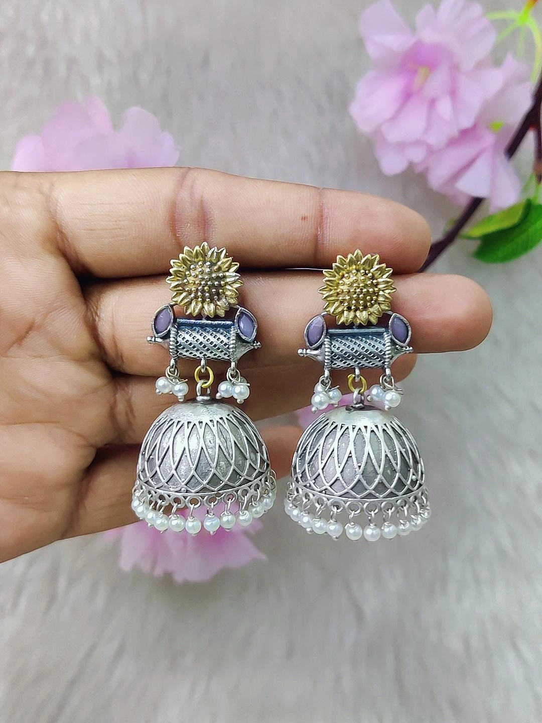German Silver Jhumi Earrings #GE110 - Baby Pink